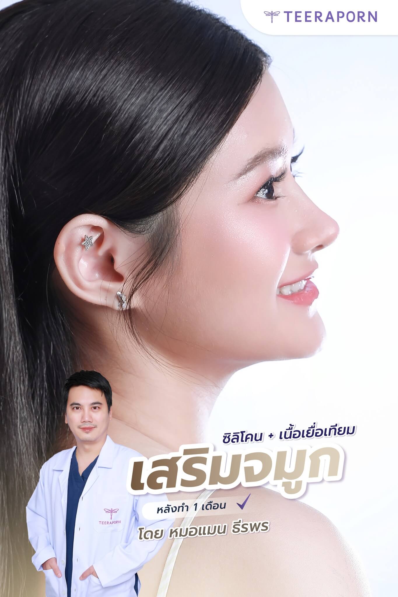 จมูกไม่โด่ง ฐานกว้าง ปลายงุ้ม = ปัญหาหลักของน้องวัยรุ่นหลายคนเลยค่ะ แต่วันนี้คุณมิวได้รับการแก้ไขได้แบบเนียนๆ ด้วยการเสริมจมูก ซิลิโคนเกรดพรีเมียม + รองปลายด้วยเนื้อเยื่อเทียม