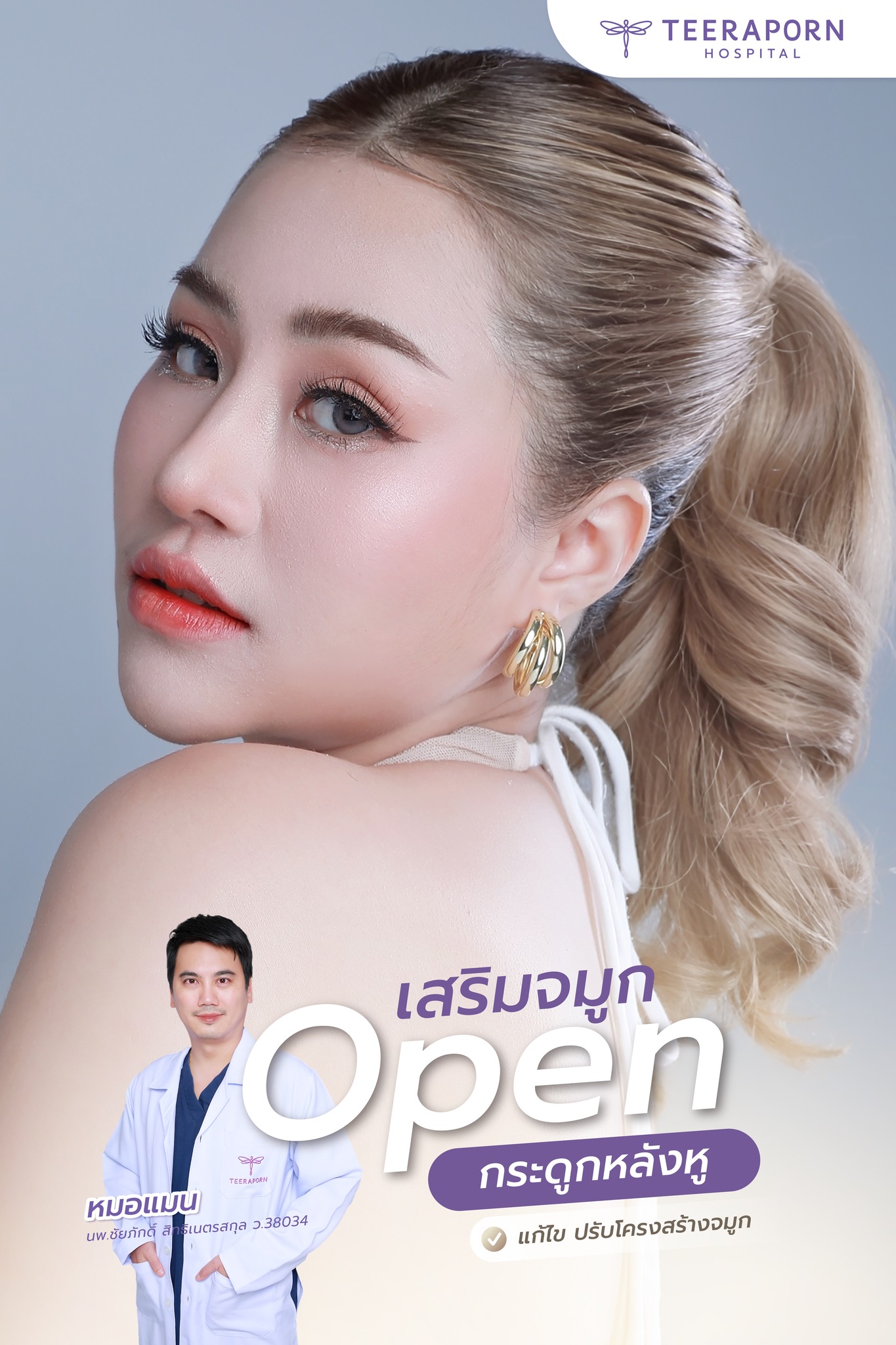 Open กระดูกหลังหู เห็นผลลัพธ์ที่เปลี่ยนไปภายใน 2 เดือน แก้จมูกให้ละมุนขึ้น โครงหน้าคุณอิงเอิญชัดขึ้นอย่างเป็นธรรมชาติ ปรับโครงสร้างจมูกแบบเฉพาะบุคคล โดยหมอแมน โรงพยาบาลธีรพร